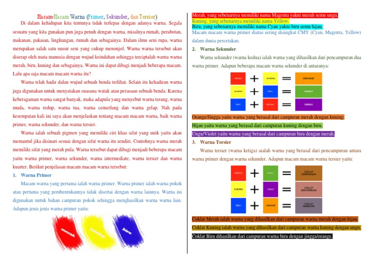 Apa Yg Dimaksud Dengan Warna Primer Sekunder Dan Tersier